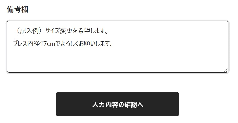 サイズ変更を希望の場合は、購入時のフォームに以下のように明記してください。